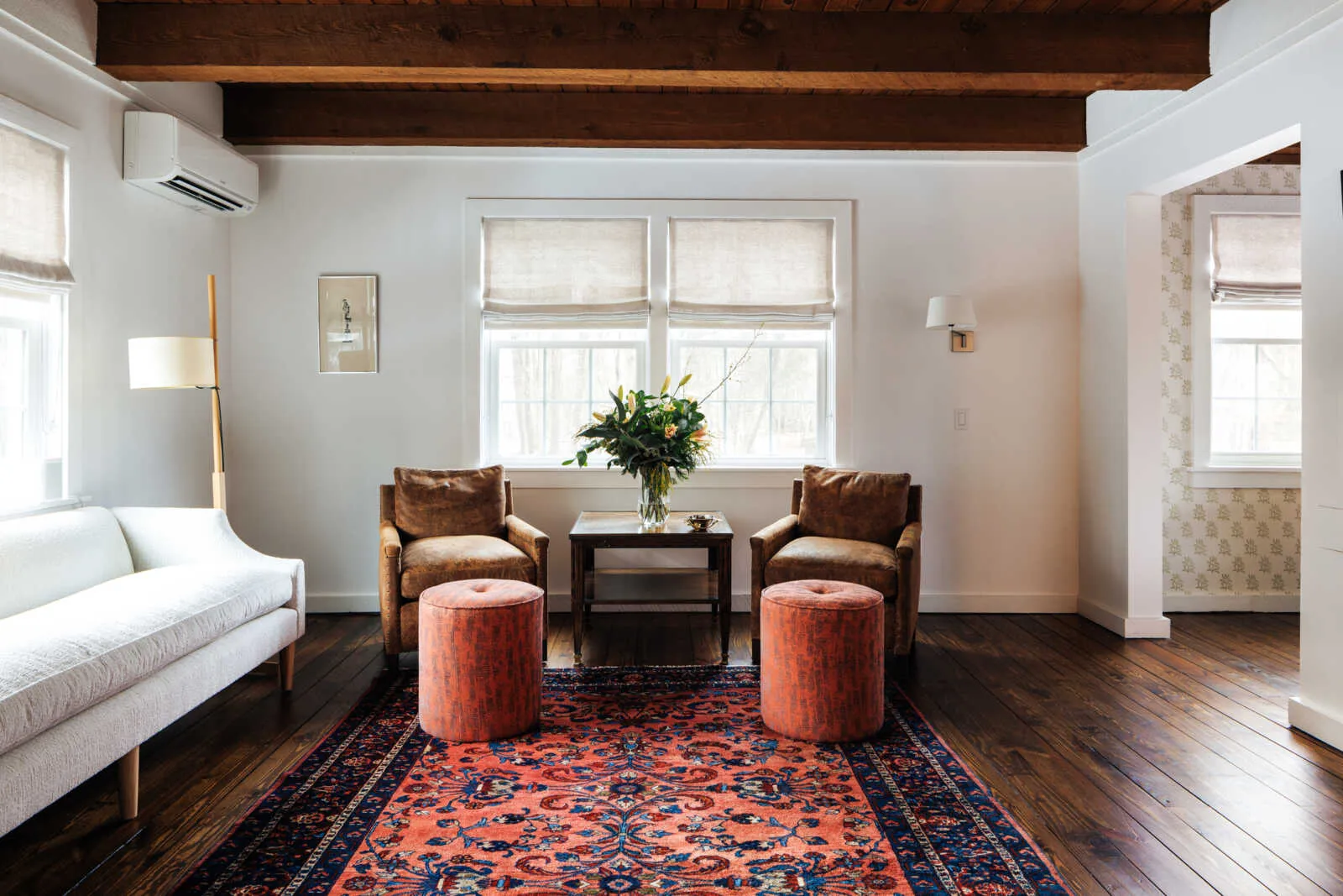 Outdoors, a swimming pool and sweeping lawn complete the property, creating a peaceful setting for summer gatherings, recreation, and relaxation. Just over 2 hours from NYC, convenient to Amtrak and all the amenities Hudson offers.