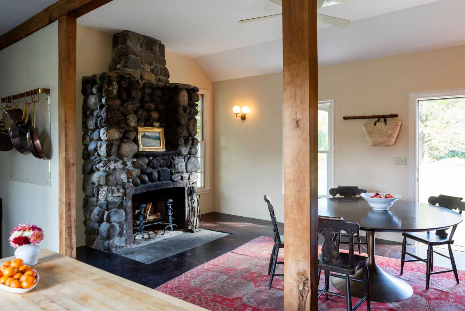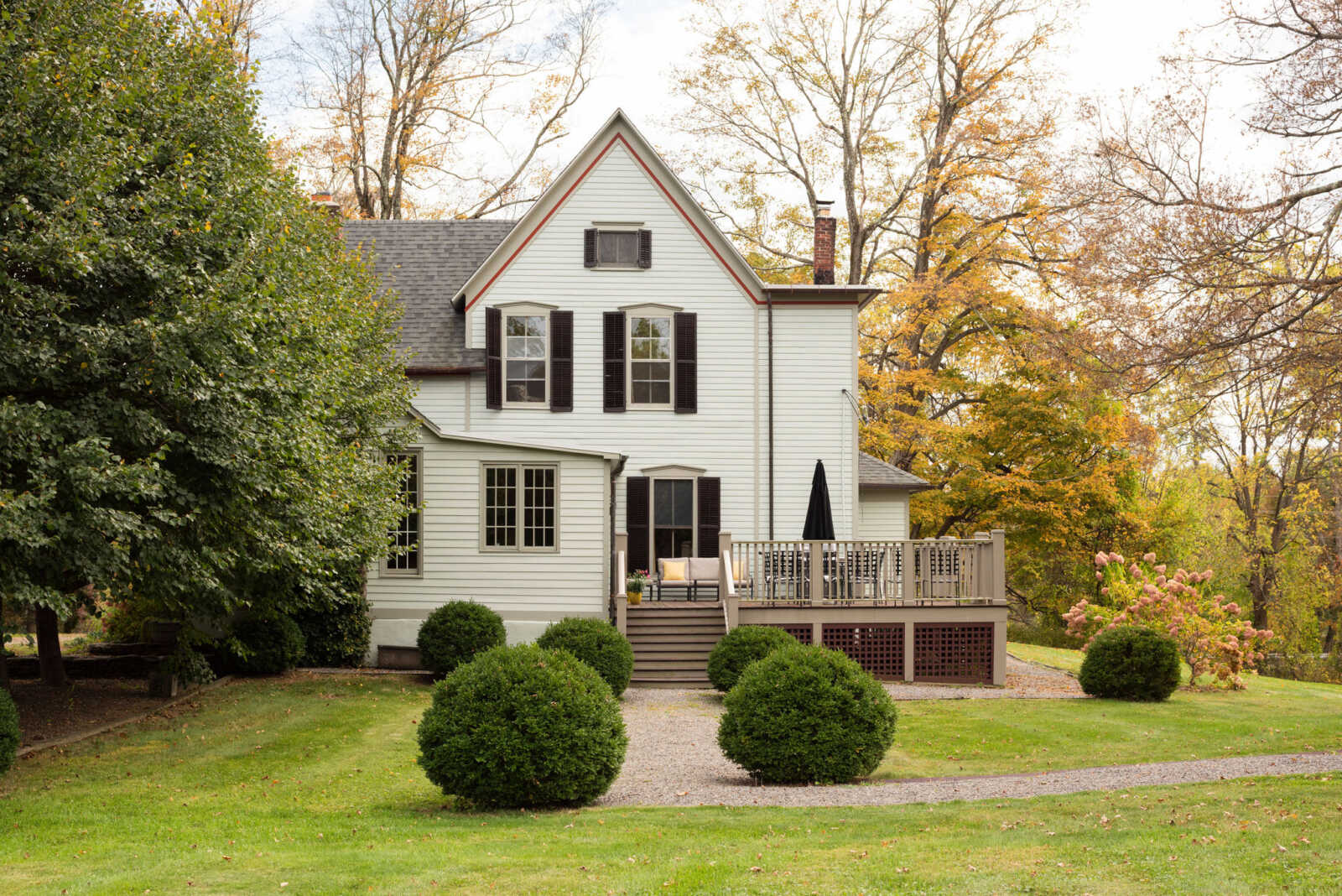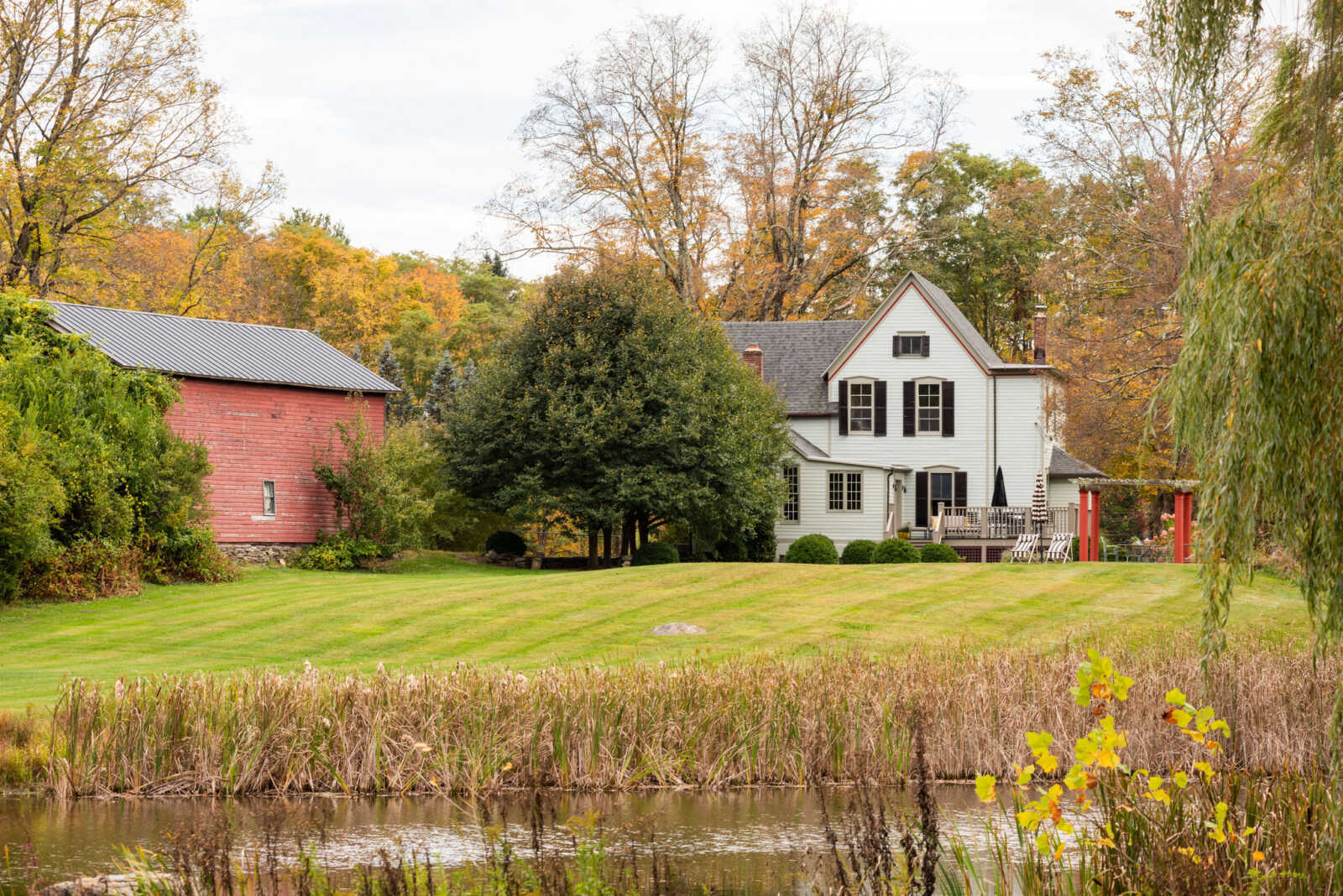 Introducing Knickerbocker Farm, an elegant circa 1790 farmhouse overlooking rolling meadows, a tranquil pond, and two antique barns, on over 12 acres, just three miles from the heart of Rhinebeck. Enter through the classic front hall with its graceful staircase and sense of history. The living, dining, and sitting rooms are graciously proportioned, each featuring 10-foot ceilings, decorative crown and base moldings, marble fireplaces, and beautifully preserved wide-board floors that flow throughout the home. Pocket doors connect the living room and sitting rooms, adding both charm and flexibility. Sunlight pours into the corner sunroom from the east and south, while the eat-in kitchen, anchored by a striking stone fireplace, offers a warm gathering space for casual dining. French doors open to a mahogany back deck, perfect for enjoying the sweeping pastoral views. A first-floor bedroom and full bath allow for guest accommodations or easy one-level living. Upstairs, four sunlit bedrooms include two spacious rooms, a cozy smaller bedroom, and one tucked away in its own wing, along with two full baths. A full walk-up attic provides generous storage. The stately front porch spans the home’s façade, inviting quiet moments of relaxation and connection to the landscape. Knickerbocker Farm is both enchanting and timeless – elegantly designed yet comfortably to live in, with thoughtful details and sweet nooks throughout. A true Hudson Valley treasure.