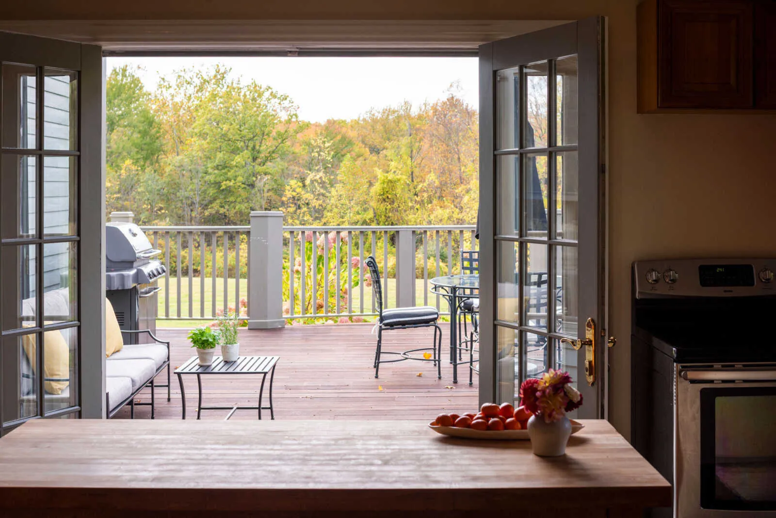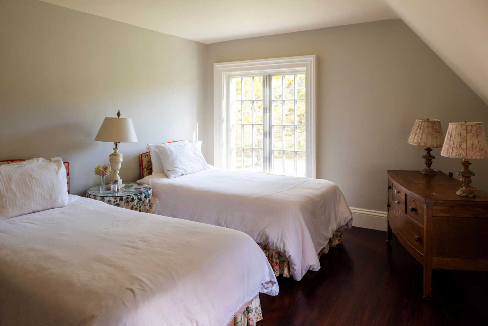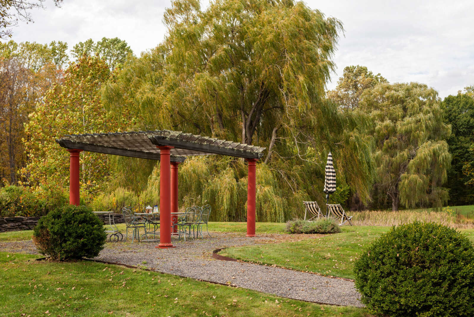 Introducing Knickerbocker Farm, an elegant circa 1790 farmhouse overlooking rolling meadows, a tranquil pond, and two antique barns, on over 12 acres, just three miles from the heart of Rhinebeck. Enter through the classic front hall with its graceful staircase and sense of history. The living, dining, and sitting rooms are graciously proportioned, each featuring 10-foot ceilings, decorative crown and base moldings, marble fireplaces, and beautifully preserved wide-board floors that flow throughout the home. Pocket doors connect the living room and sitting rooms, adding both charm and flexibility. Sunlight pours into the corner sunroom from the east and south, while the eat-in kitchen, anchored by a striking stone fireplace, offers a warm gathering space for casual dining. French doors open to a mahogany back deck, perfect for enjoying the sweeping pastoral views. A first-floor bedroom and full bath allow for guest accommodations or easy one-level living. Upstairs, four sunlit bedrooms include two spacious rooms, a cozy smaller bedroom, and one tucked away in its own wing, along with two full baths. A full walk-up attic provides generous storage. The stately front porch spans the home’s façade, inviting quiet moments of relaxation and connection to the landscape. Knickerbocker Farm is both enchanting and timeless – elegantly designed yet comfortably to live in, with thoughtful details and sweet nooks throughout. A true Hudson Valley treasure.