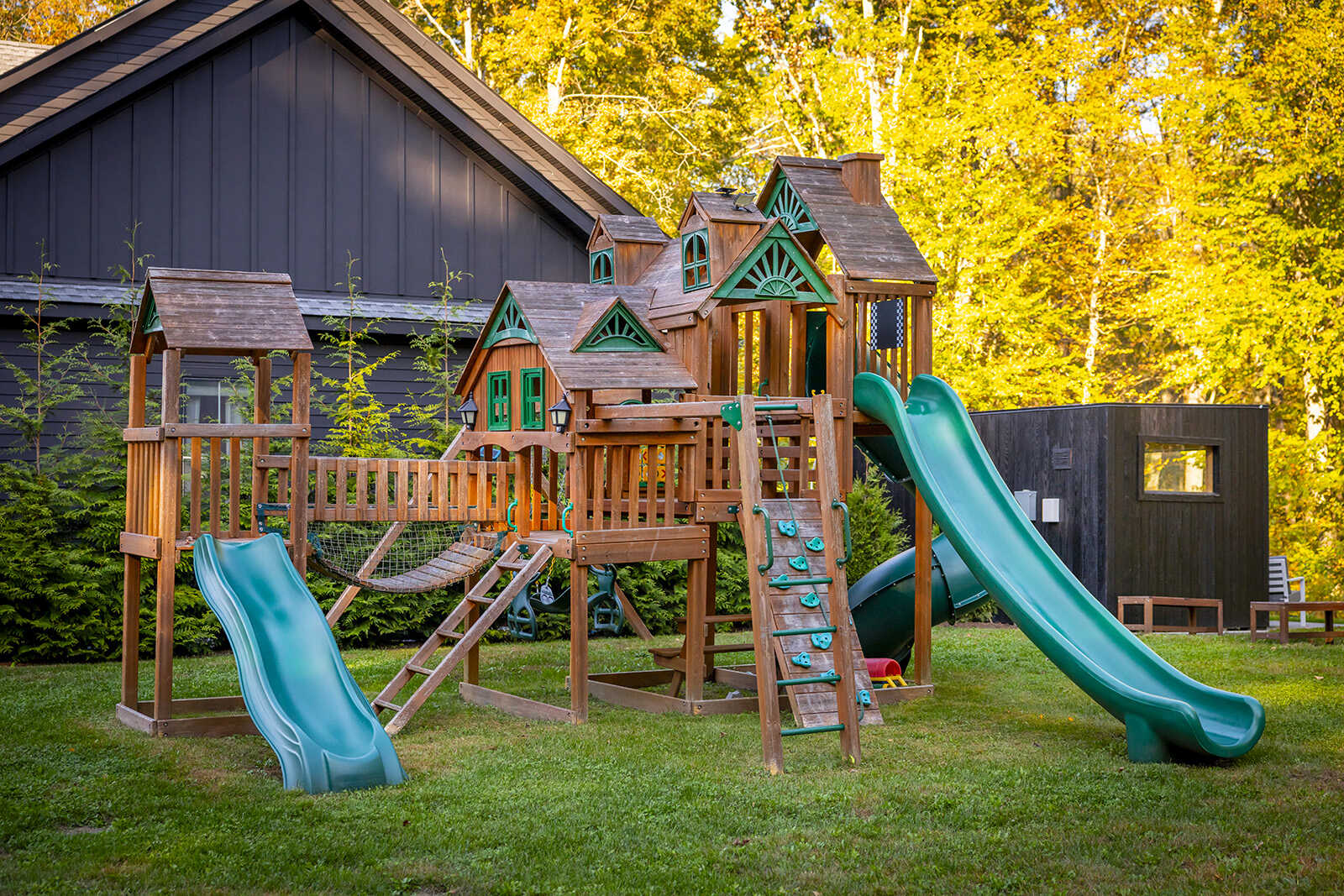 awning, children’s playset, and seasonal vegetable garden ensures endless