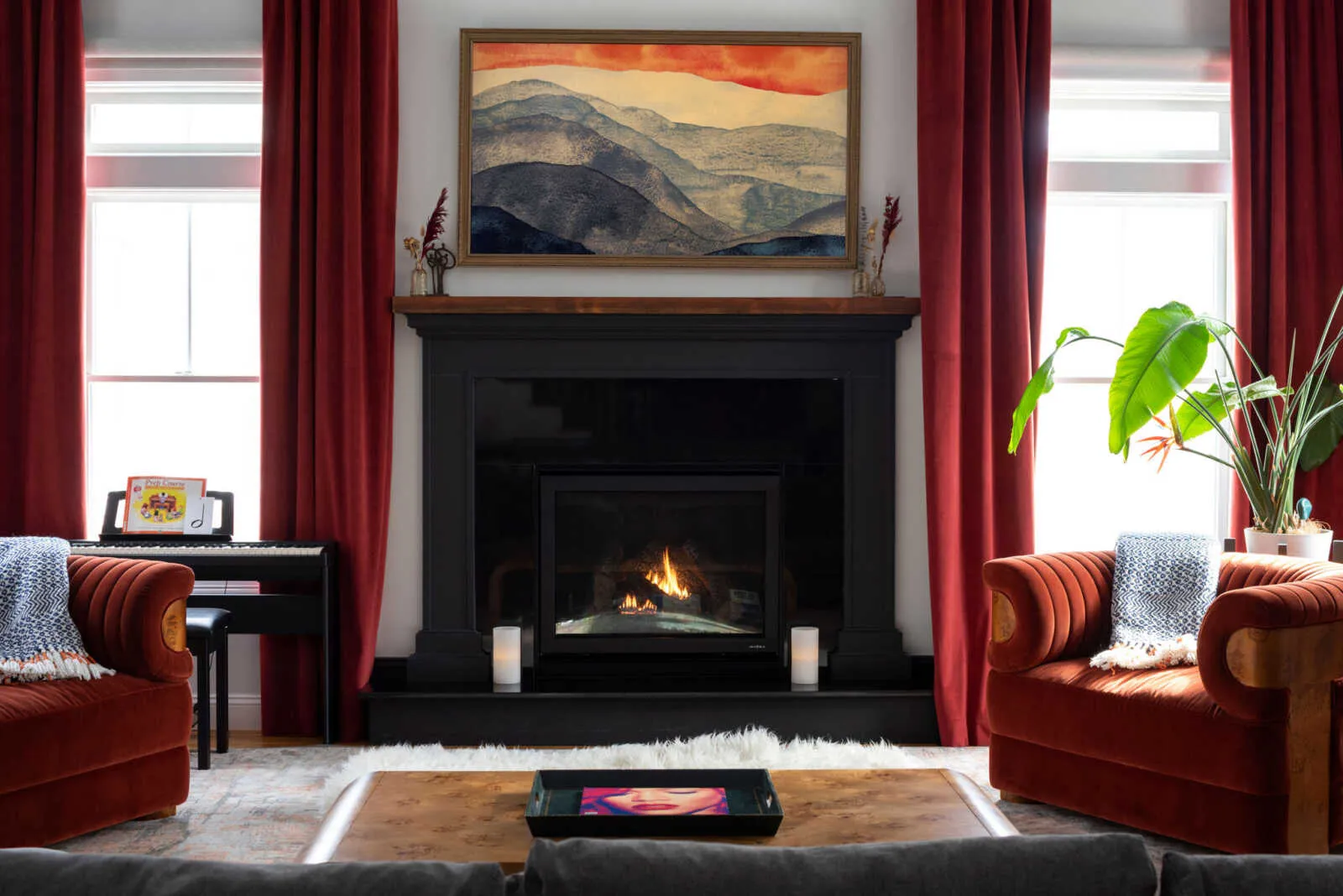 featuring a propane fireplace that flows seamlessly into the chef’s kitchen, fully