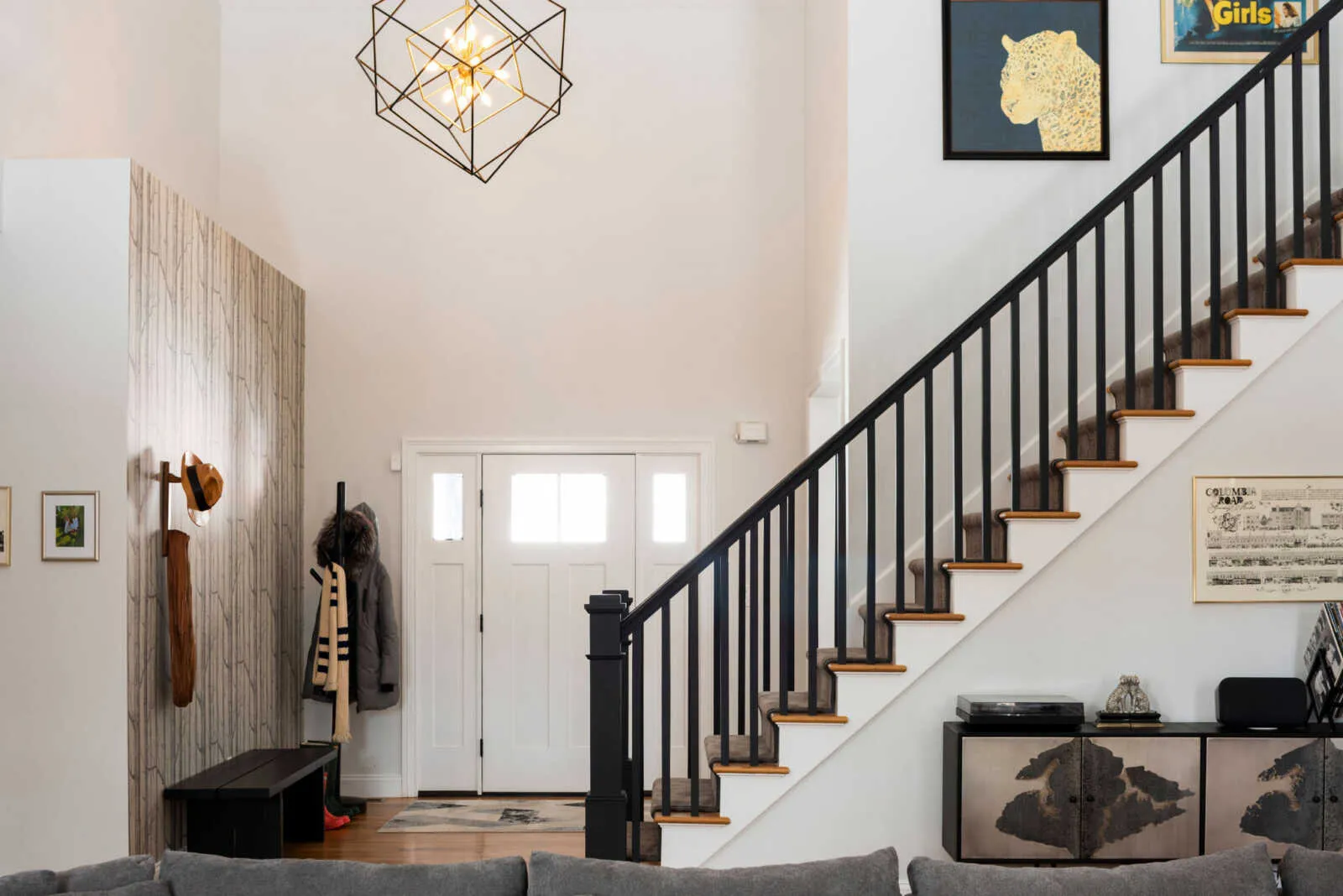 Enter through an expansive foyer into a dramatic double-height living room